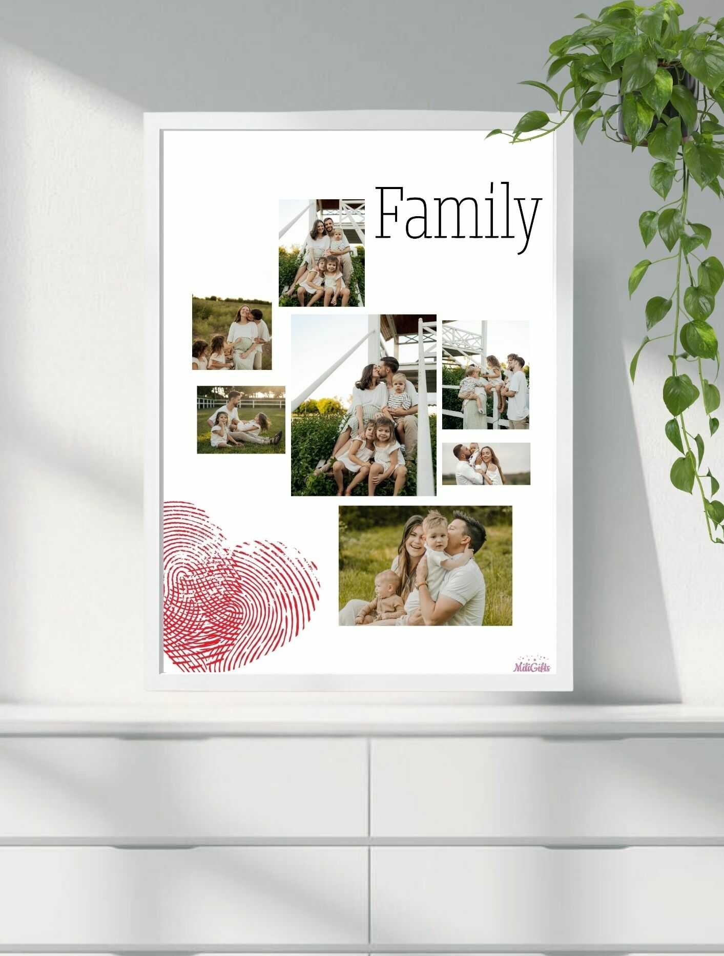 קולאז’ משפחתי מרגש, בעיצוב אישי, שמאגד את הרגעים הכי יפים של המשפחה שלכם לתמונה אחת מלאה באהבה, חום וזיכרונות.